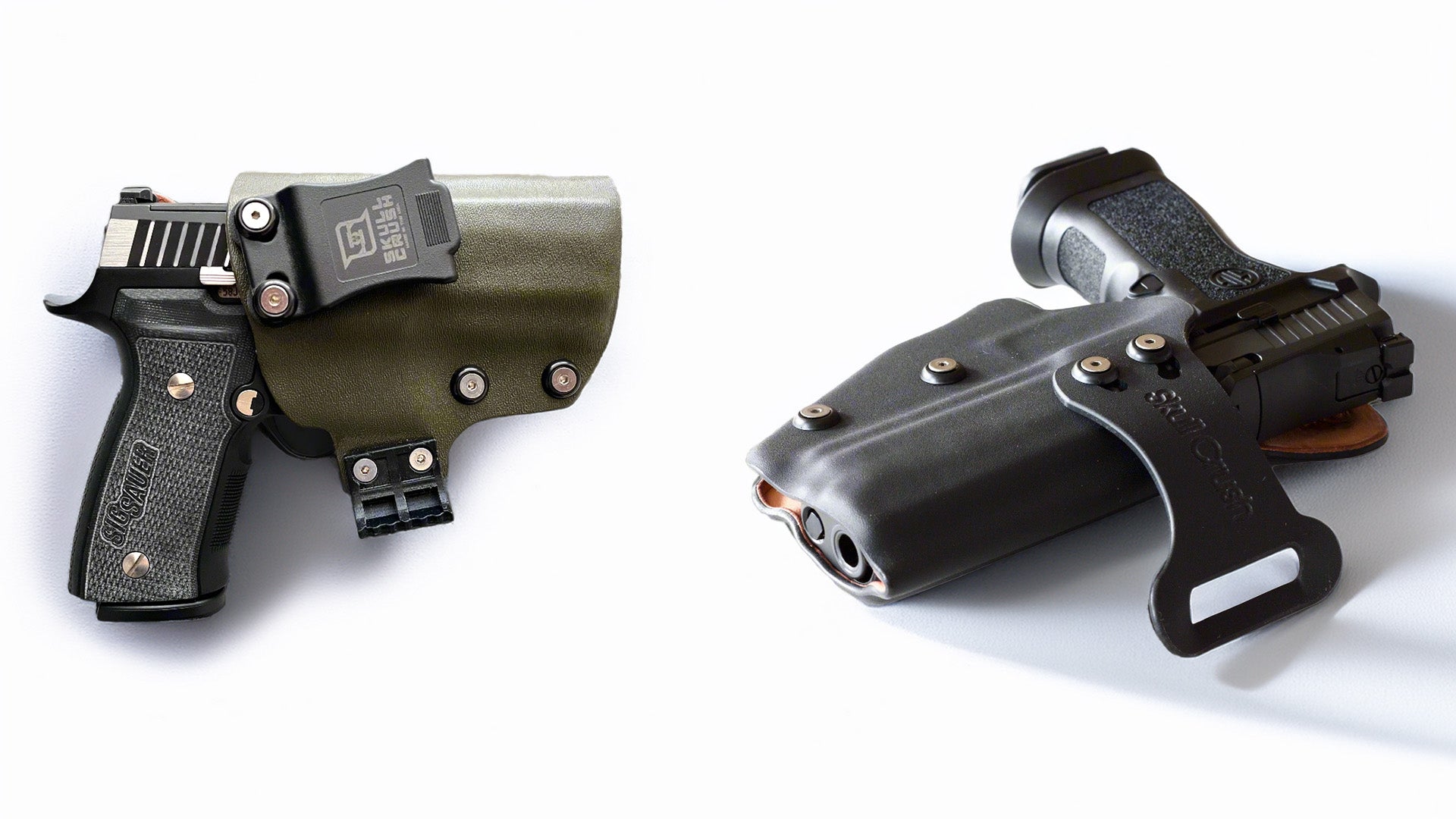 Experience premium craftsmanship and unwavering reliability with the Skull Crush Holster, available in both IWB (Inside the Waistband) and OWB (Outside the Waistband) configurations. Whether you prefer deep concealment or open carry, our holsters provide the perfect fit, finish, and function for your firearm.